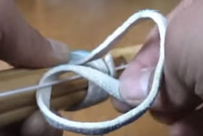 W型の柄革は、こうすることで、柄革が一本にしまります。